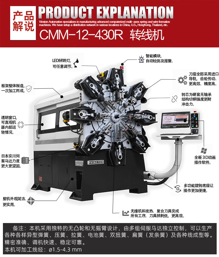新款CMM-12-430R 轉線機無凸輪12軸電腦多功能彈簧機