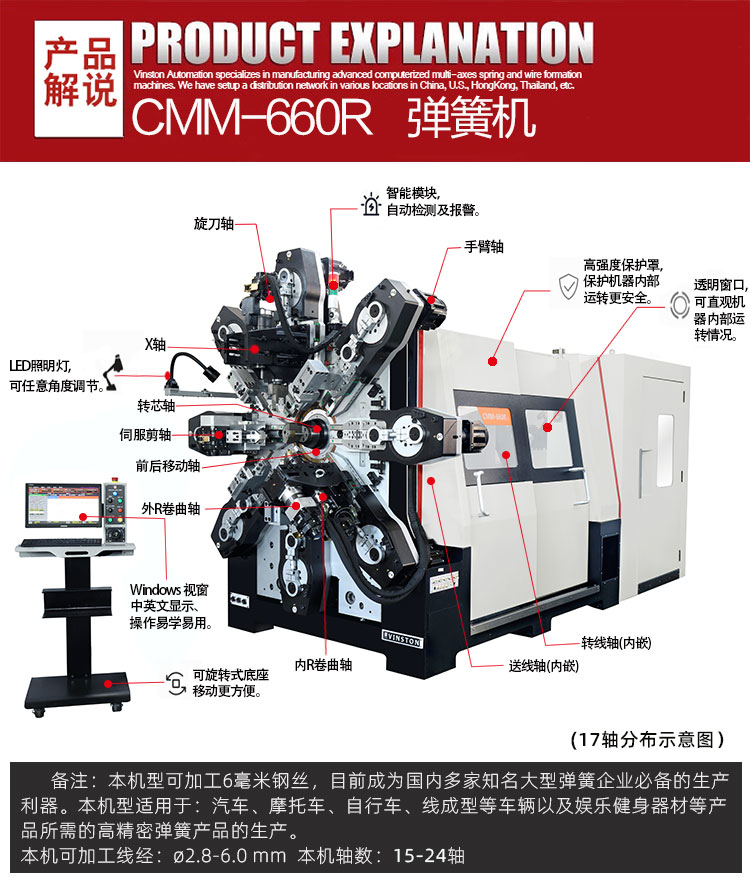 新款 CMM-660R 無凸輪多軸多功能電腦彈簧機