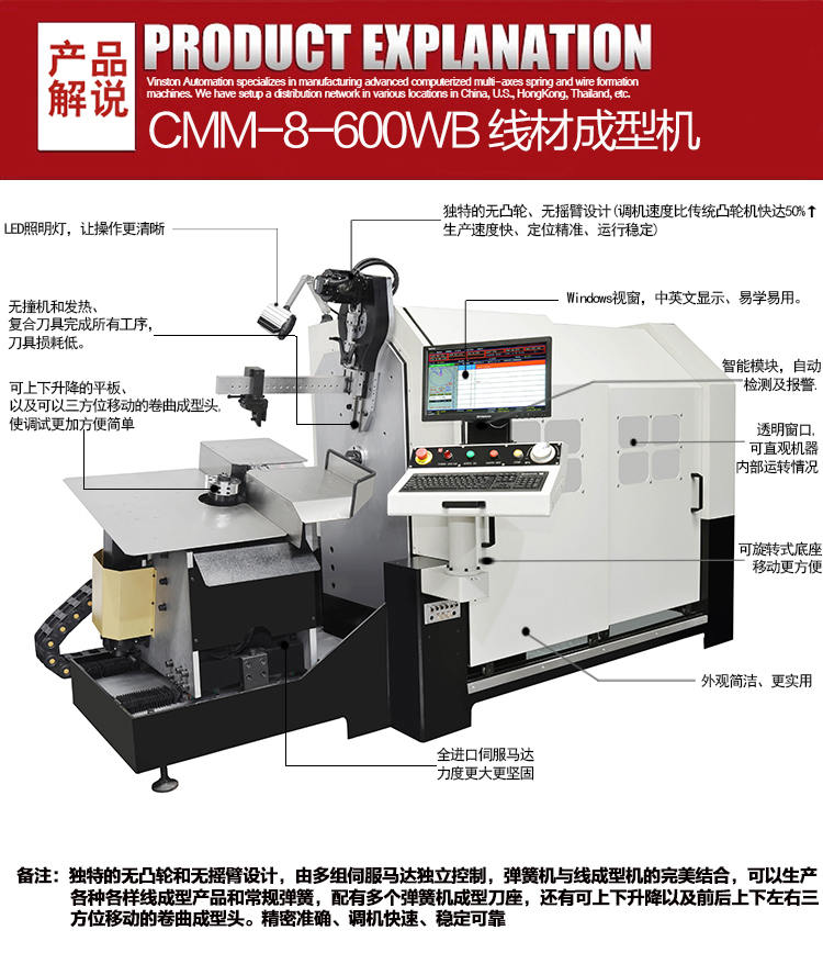 永騰建議選擇永騰600wb線成型機較為合適,CMM-8-600WB 線材成型機可生產(1.8-4.0mm線經鐵線或者低碳鋼可做2.5-6.0mm),本機專業生產汽車零部件等線成型,特別適合做大桿件汽車五金線材成型產品帶平板的線材折彎成型機,既具備精密彈簧機的精度,又超越普通線成型機的速度,生產汽車零部件和廚衛五金制品以及其他日用五金制品非常適合。具有設計直觀,調試方便,速度快的亮點。
