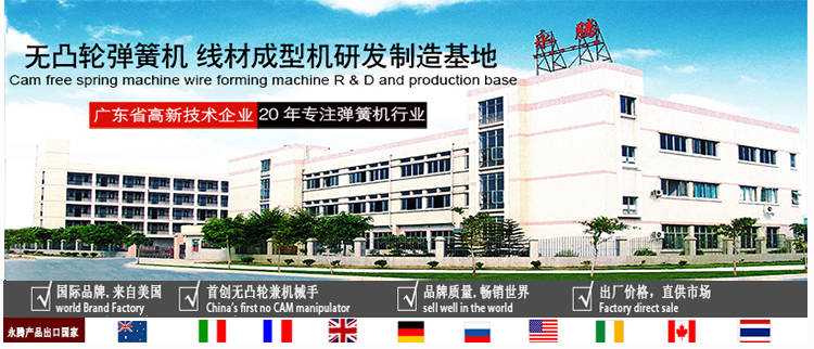 東莞永騰自動化設備有限公司是一家專業生產CNC多軸多功能無凸輪電腦彈簧機、線材成型機的美國獨資企業。公司從2001年開始運用美國先進的伺服控制技術進行一次具有重要意義的技術改革,打破傳統的凸輪帶動成型模式,成為行業創新的無凸輪模式兼備機械手的彈簧機。可加工線徑0.15-12mm范圍彈簧及線材成型。