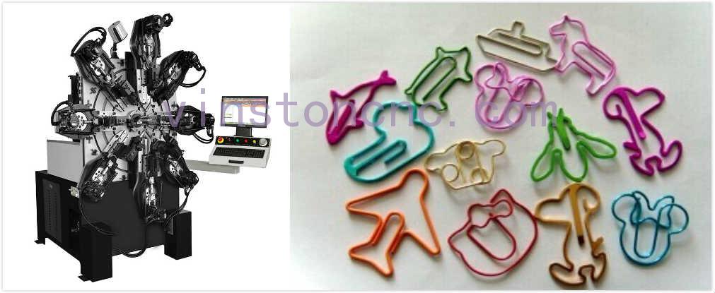還有,CMM-10-400機和CMM-10-236機都是不轉線,也能做一些立體的線成型,特別大的超長的產品,在機器的面板前面加一個托板,加上其他手臂的互助配合,也就是一臺更靈活的線成型機了,這樣的配置。在凸輪彈簧機上根本無法實現的產品,在永騰無凸輪彈簧機上,確能神奇的批量生產。如CMM-10-236機上做的異形回形針,圖片如下: